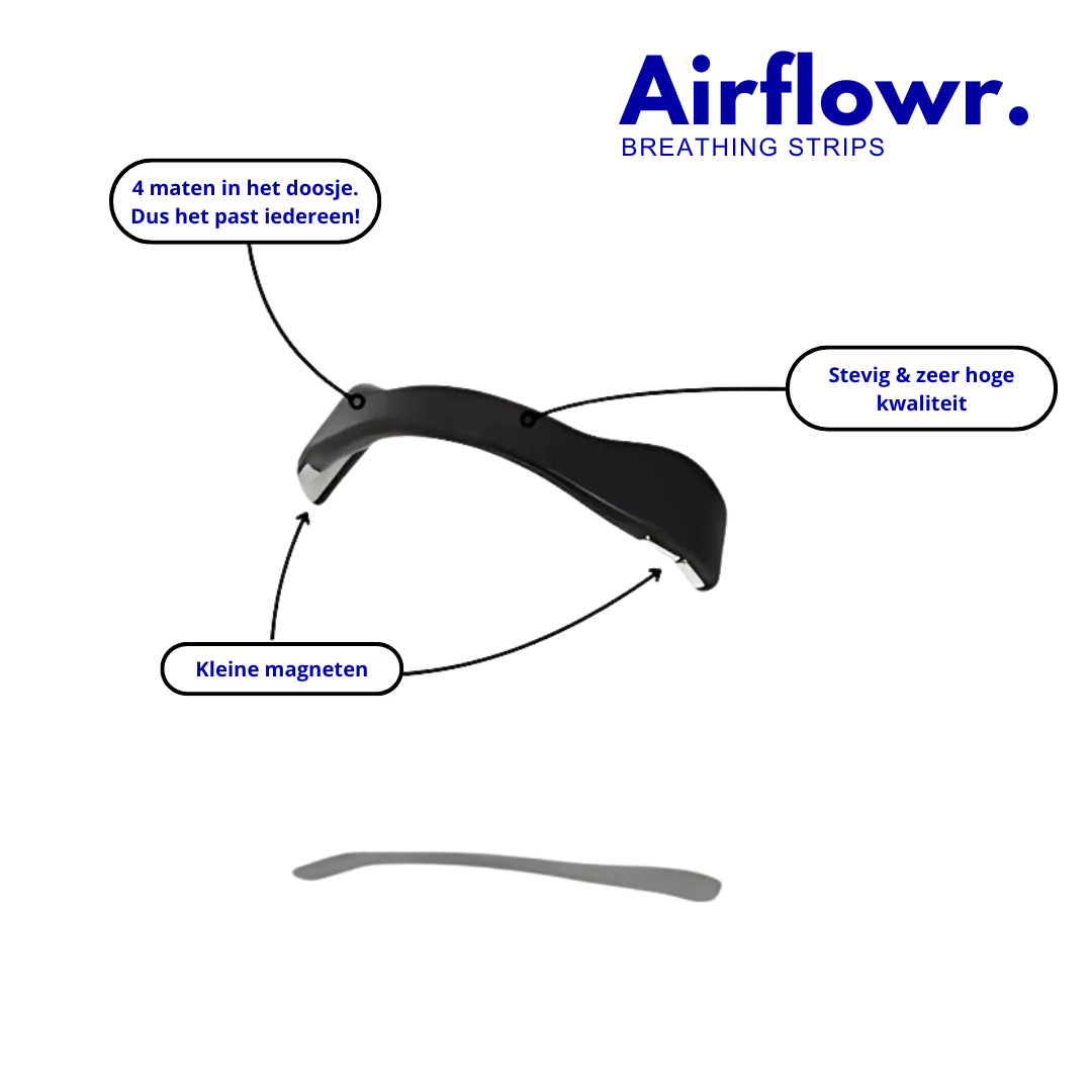Onze magnetische neusstrips vergroten de luchtwegen door zachtjes de neusgaten open te houden met behulp van een subtiele magnetische kracht. Dit helpt de luchtstroom te verbeteren, waardoor ademhalen makkelijker wordt zonder medicatie.